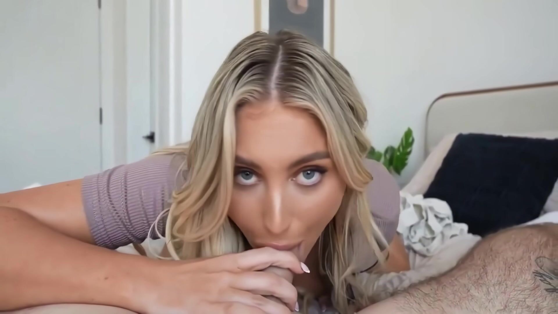 Špinavá blondína berie cudzie péro hlboko do krku a chce masívny cumshot