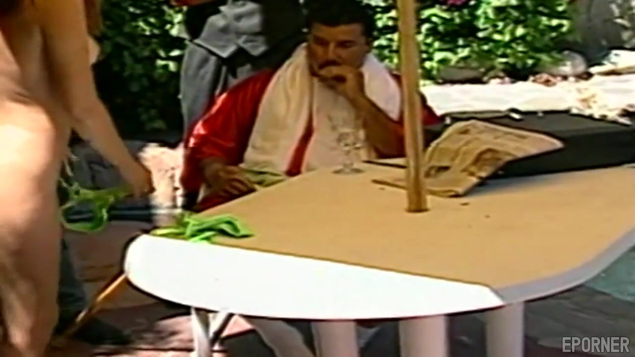 Dva penisy v jednej babe pri bazéne vo vintage štýle