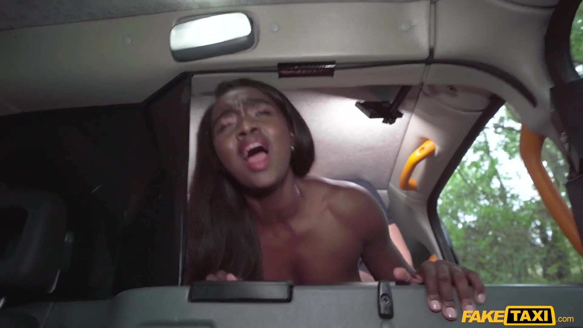 Táto ebony potvora si v taxíku nechala surovo rozmrdať dierku a pri každom hlbokom príraze striek...