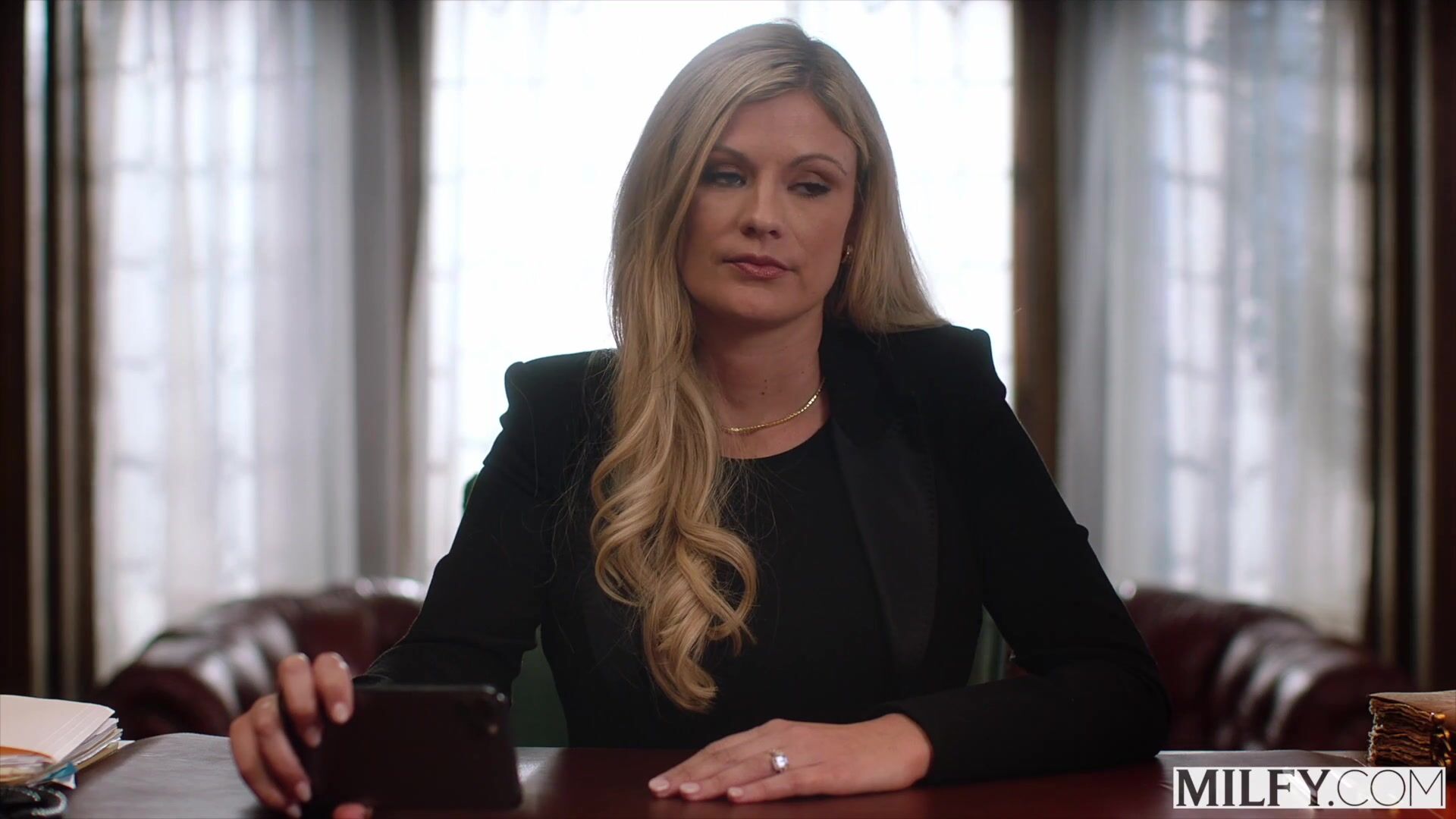 Riaditeľka Ellie a jej drsný spôsob disciplíny, ktorý skončil vášnivým mrdaním na pracovnom stole